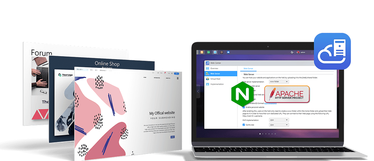 Easily set up a website with Web Center. Install Apache or Nginx or almost any other web server implementation and add multiple website portals for an easy-to-use web server experience.
