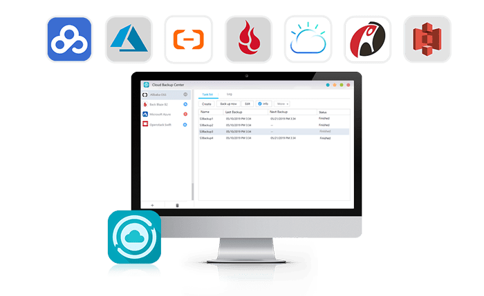 Cloud Backup Center brings support for various business cloud services including, but not limited to Amazon S3, Backblaze B2, Baidu Cloud, IBM Cloud, Rackspace Cloud Files, Microsoft Azure Blob Storage , Alibaba Cloud, SFTP and WebDAV. Control your data with instant and scheduled backups as well as using Cloud Backup Center to create a hybrid cloud that keeps your data online and offline, keeping your data protected.