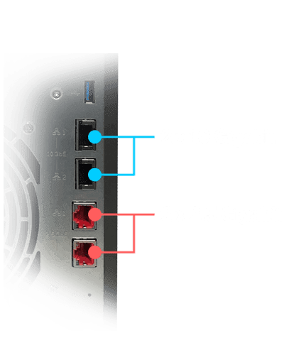 The all new Lockerstor series of NAS feature dual Intel 10-Gigabit Ethernet ports as well as dual Realtek 2.5-Gigabit Ethernet ports. With a managed switch that supports multiple speeds, take advantage of up to 20 gbps of speed with both 10-Gigabit ports or up to 5 gbps on both 2.5-Gigabit ports.