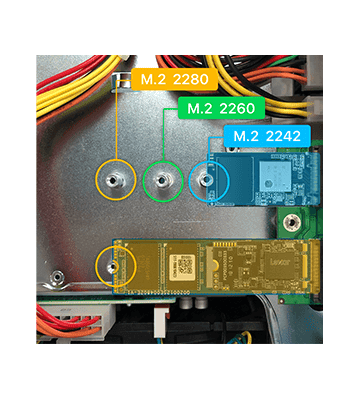 Two M.2 2280, 2260 or 2242 slots supporting NVMe and AHCI SSDs