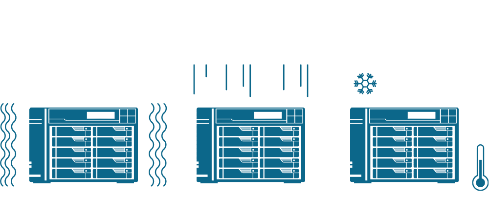 All ASUSTOR NAS are designed for and are suitable for 24/7 use. ASUSTOR NAS devices have also undergone rigorous tests, such as drop tests and burn tests to test durability in extreme conditions. Heatsinks were added to sensitive components to dissipate heat, helping to maintain the longevity of the device.