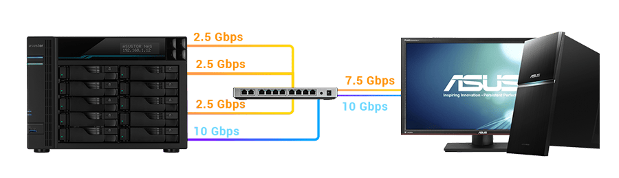 * Performance figures are achieved in the ASUSTOR lab using state of the art client computers under optimized network settings, and could vary in different environments. Ordinary desktop or notebook computers may be unable to reproduce these figures.