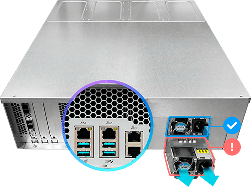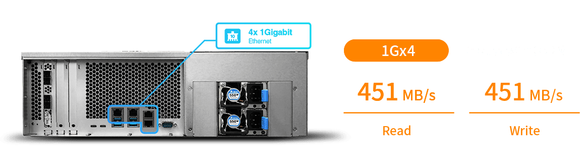 The Lockerstor 16R Pro(3U) features comprehensive backup solutions. The built-in redundant power supply and 4 Gigabit Ethernet ports effectively increase reliability, data integrity and execution speeds. The Ethernet ports and power supply all feature failover capabilities (when one fails, the other can continue to operate) in order to ensure for continuous data availability.