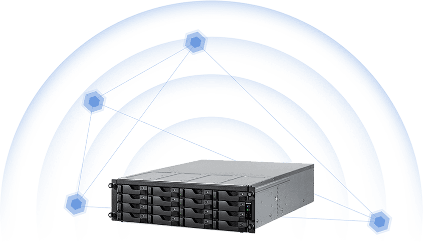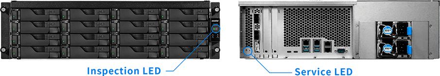 In enterprise environments, storage devices are commonly placed together in a server room. In order to allow administrators to quickly find the NAS from among many servers the Lockerstor 12R Pro(2U) / Lockerstor 16R Pro(3U) provides a dedicated button on front panel. When this button is pressed, the LED service light on the rear panel of the NAS will light up. ASUSTOR also offers the mobile NAS management app, AiMaster which provides the exclusive Find Me function. When Find Me is activated, the system status light on the front of the NAS will flash and the system buzzer will sound, helping users to quickly find the NAS.