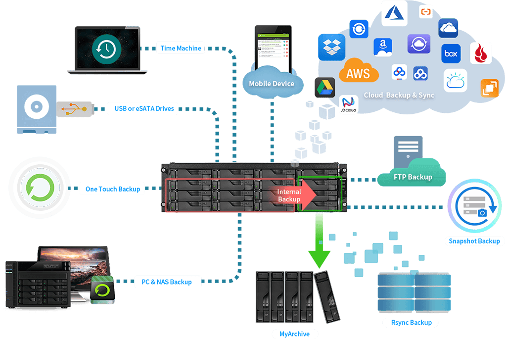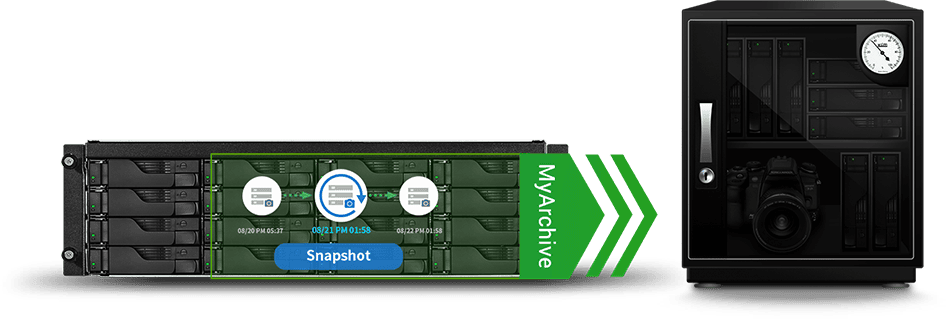 MyArchive cold backup technology turns NAS hard disks into removable storage archives. Directly insert a MyArchive hard disk into the NAS to easily access, backup and share terabytes of content.