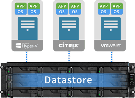 The Lockerstor 16R Pro provides enterprise-class hardware and software and is compatible with VMware, Citrix, Hyper-V virtual storage environments. iSCSI/IP-SAN and NFS support allow it to seamless integrate with existing IT environments, providing an optimal and cost-effective storage solution.