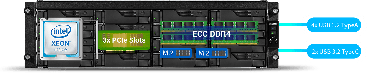 ECC memory is memory usually used in servers for detection and correction of the most common kinds of data corruption. This can help prevent data loss due to electromagnetic interference or crashes, making the NAS the Lockerstor 16R pro our most stable NAS ever.