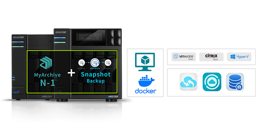The ASUSTOR NAS provides enterprise-class hardware and software and is compatible with VMware, Citrix, Hyper-V virtual storage environments. iSCSI/IP-SAN and NFS support allow it to seamless integrate with existing IT environments, providing an optimal and cost-effective storage solution.